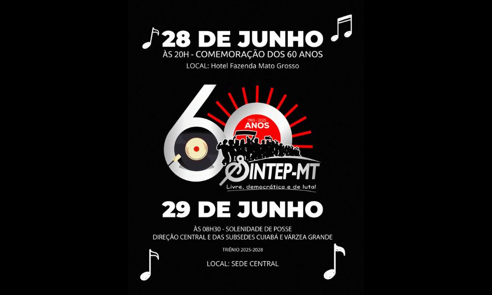 A cerimônia integra uma programação histórica que celebra os 60 anos do SINTEP-MT, com destaque para a festa de comemoração, que ocorre no dia anterior, 28 de junho, às 20h, no Hotel Fazenda Mato Grosso. O evento reunirá sindicalizad@s de todo o estado em um momento simbólico de valorização da trajetória de lutas e conquistas da categoria.