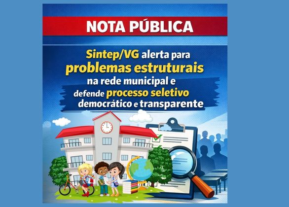 Nesse contexto, o Sintep/VG reforça que o processo seletivo é um instrumento essencial para garantir o funcionamento da rede municipal, devendo ser conduzido com critérios claros, objetivos e públicos. O sindicato acompanha esse processo desde o seu início, exercendo seu papel de fiscalização e representação da categoria, com o compromisso de assegurar a legalidade e o respeito aos direitos dos trabalhadores da educação.