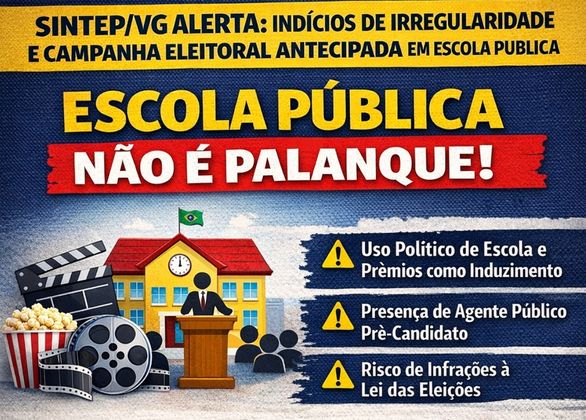 O SINTEP/VG considera a situação grave e reforça que escola pública não é palanque político, tampouco espaço para práticas que possam configurar abuso de poder político ou econômico. A função social da escola e o princípio da gestão democrática devem ser preservados.